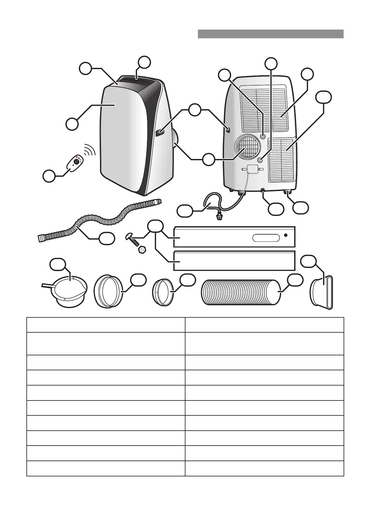13. 1.2m exible 2 pin cord 220-240V 50Hz 10A 14. Adjustable window slide kit