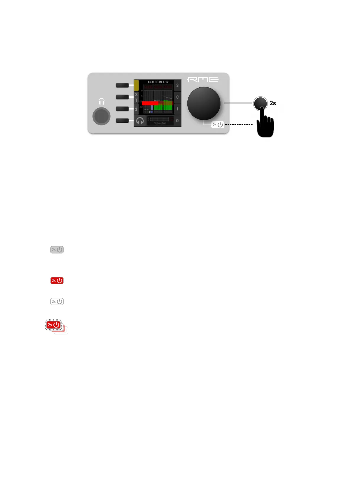 • When the device is powered on, push and hold the encoder for several seconds in order to power