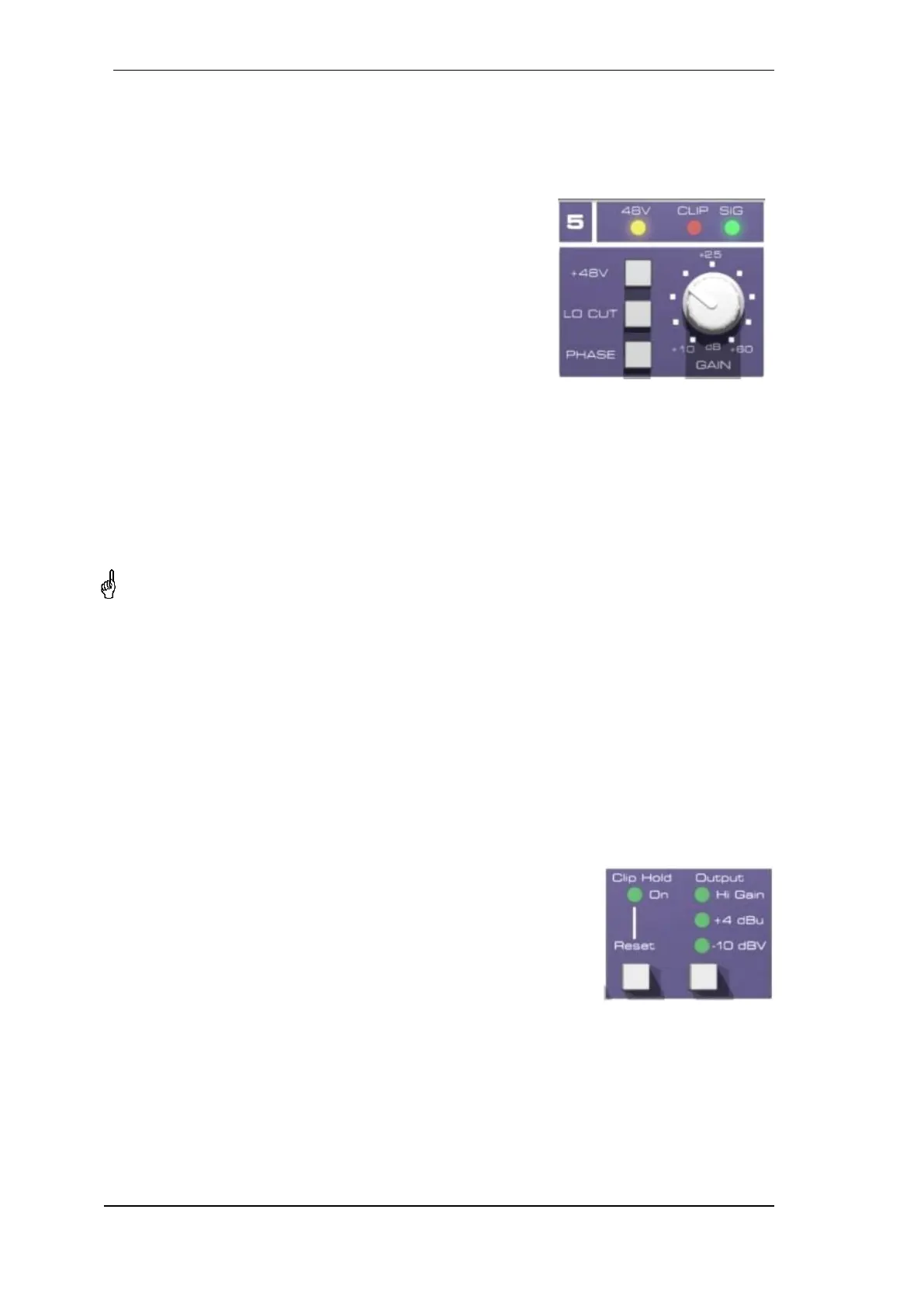 Hi Gain / +4 dBu / -10 dBV: Defines the reference level of the Line