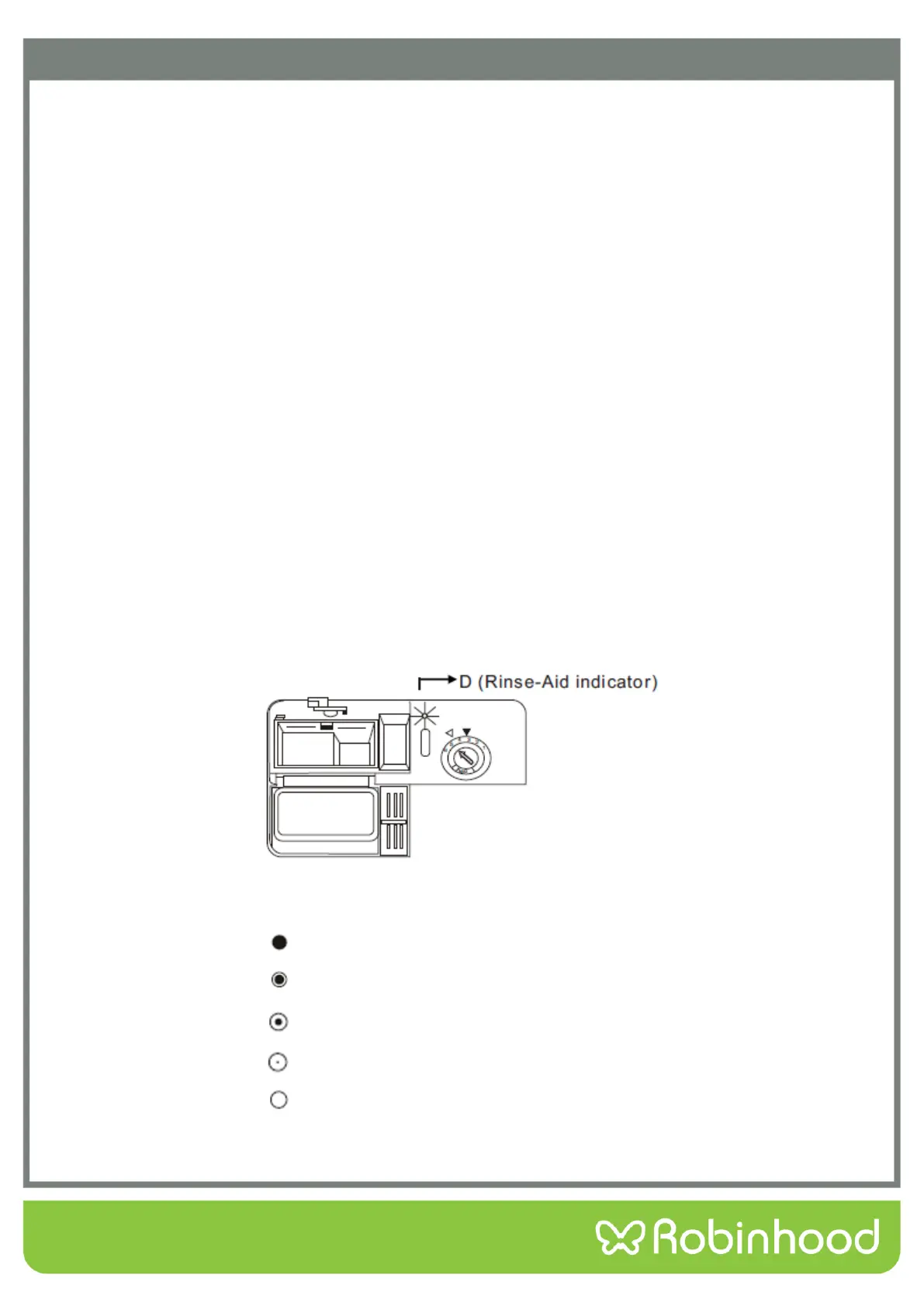 the cap. When the rinse-aid container is full, the whole indicator will be dark. As the rinse aid