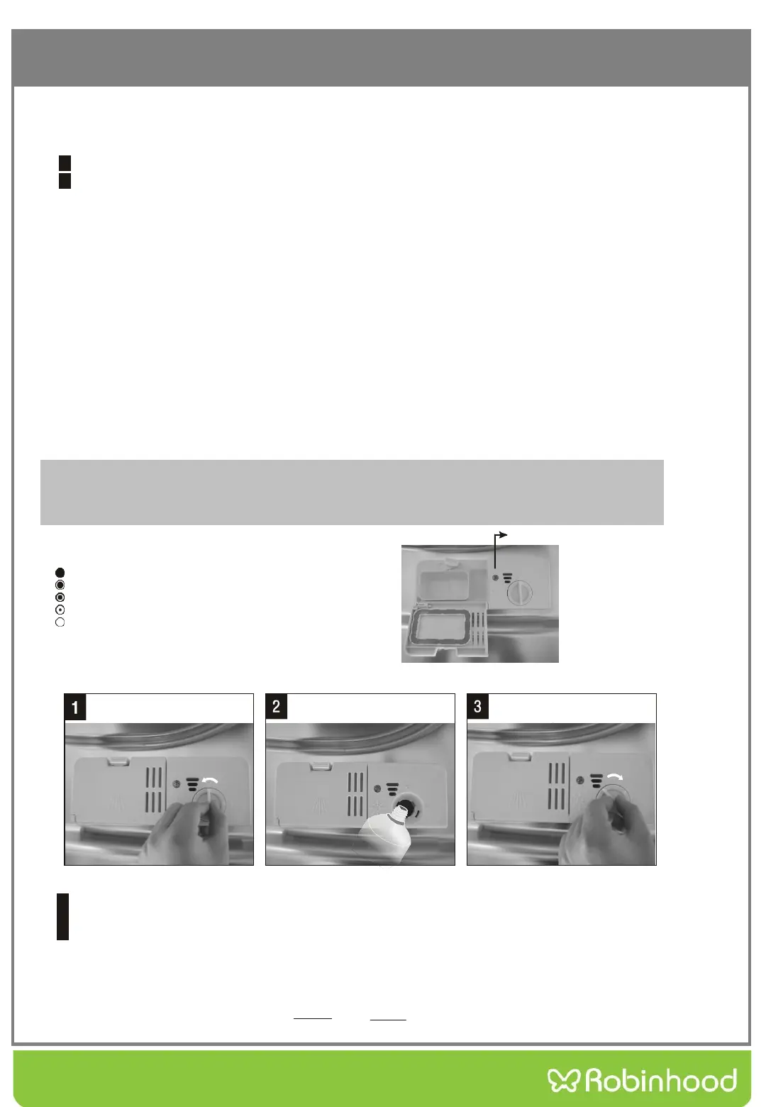 open the cap and pour the rinse aid into the dispenser until the level indicator turns completely black. The volume of the