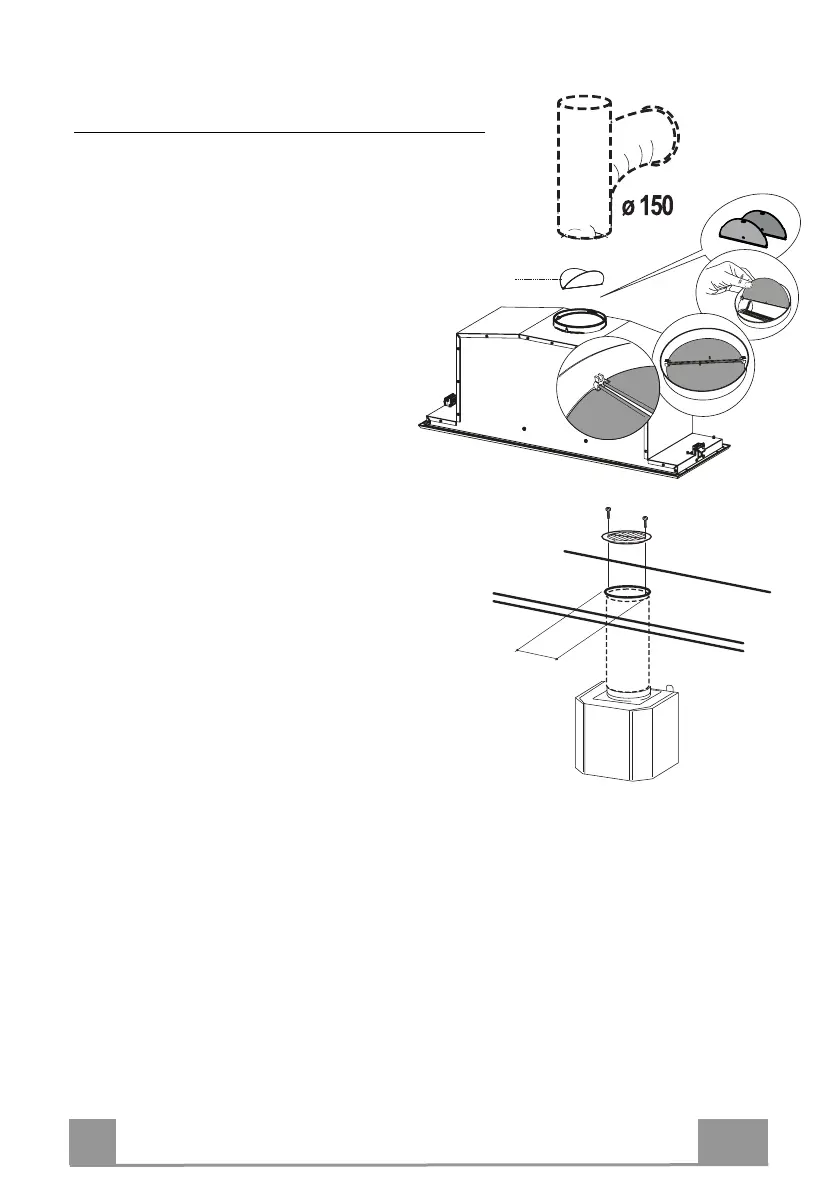 • Boor een gat van ø 150 mm in de plank boven de kap.