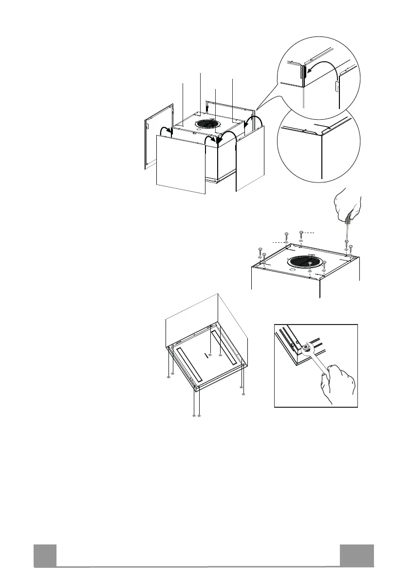 • Fix the 4 Glass elements from above using the screws