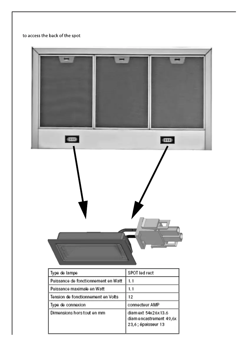 Il est nécessaire de déposer le support éclairage sur certain produit,