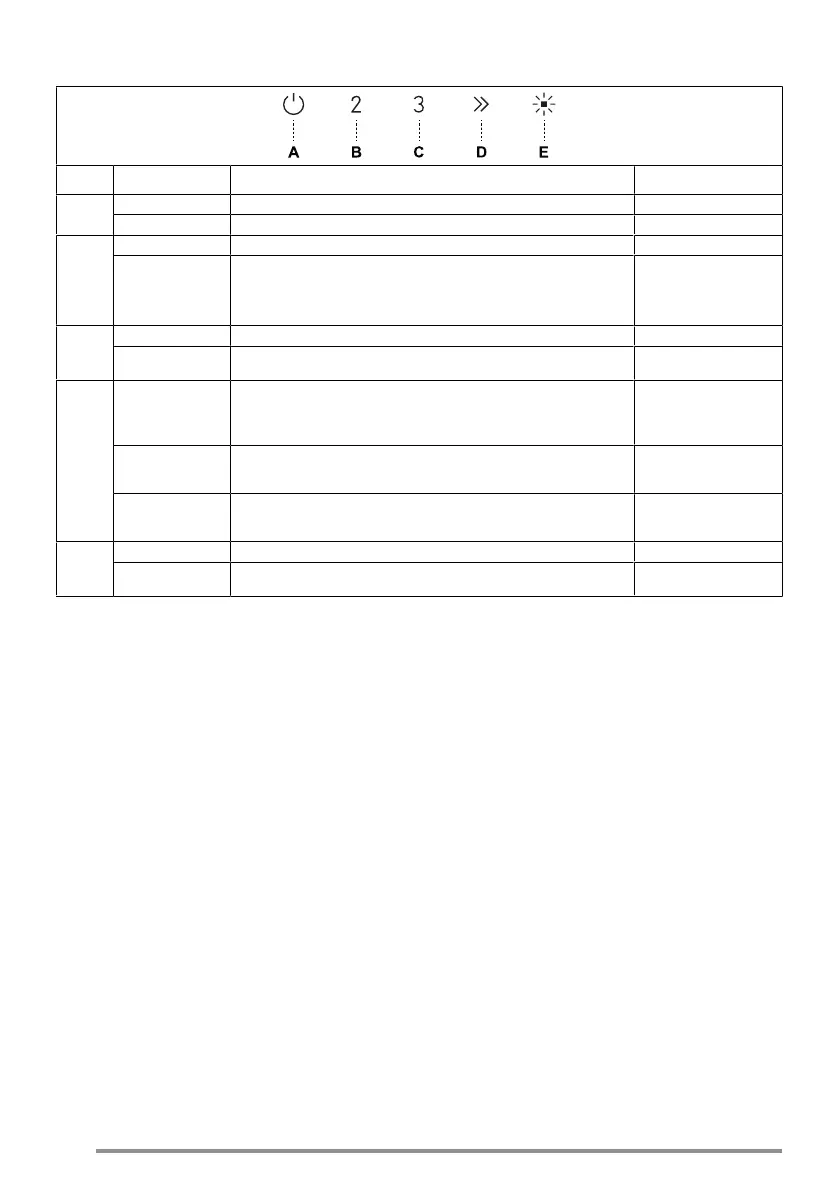 Kurz Schaltet den Motor auf die dritte Leistungsstufe. Die LEDs A+C leuchten.