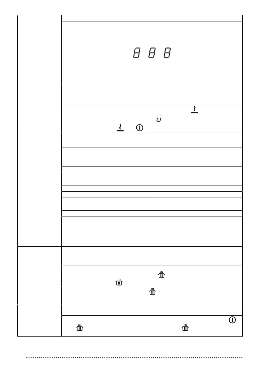Cette fonction sert à rappeler les paramètres de fonctionnement de la plaque de cuisson en cas