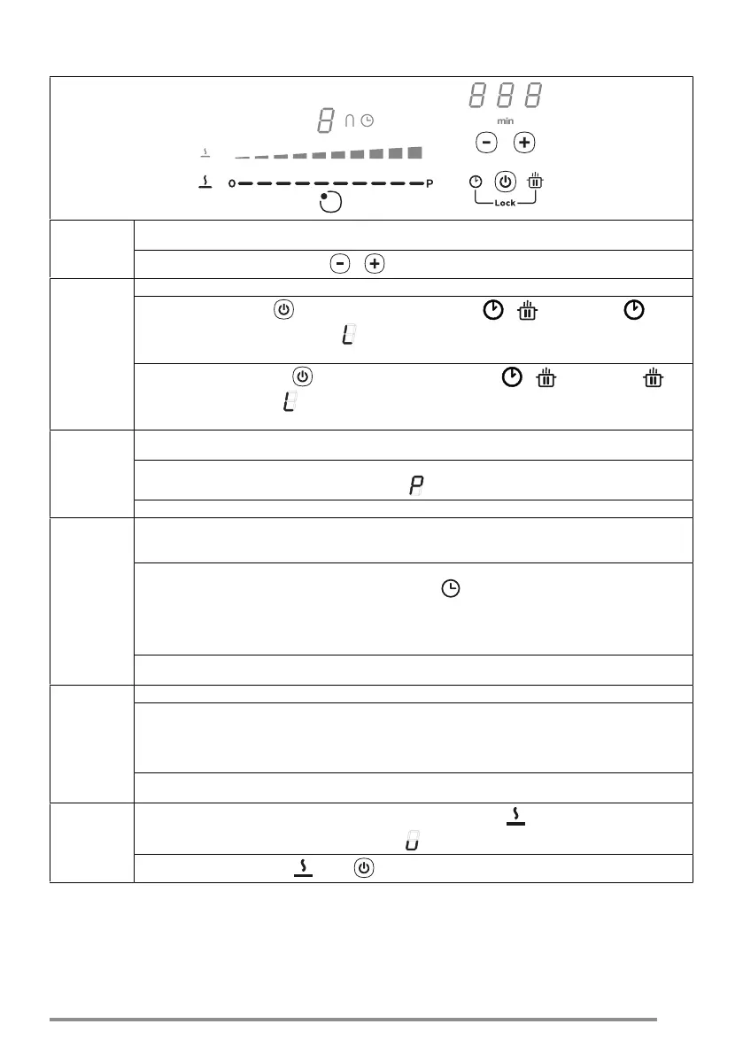 «+» et sur «-» pour régler le temporisateur. Le symbole de la zone de cuisson s’allume. Appuyer in-