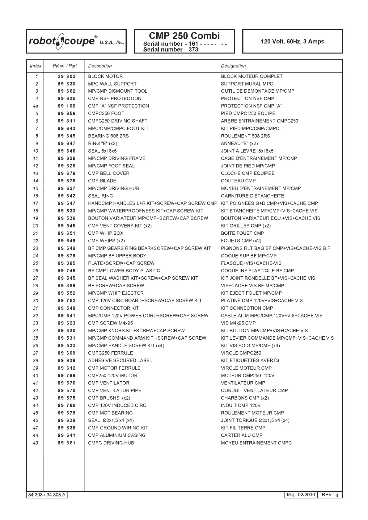 Bekijk gratis de handleiding van Robot Coupe CMP 250 V.V., stel vragen en lees de antwoorden op veelvoorkomende problemen, of gebruik onze assistent om sneller informatie in de handleiding te vinden of uitleg te krijgen over specifieke functies.