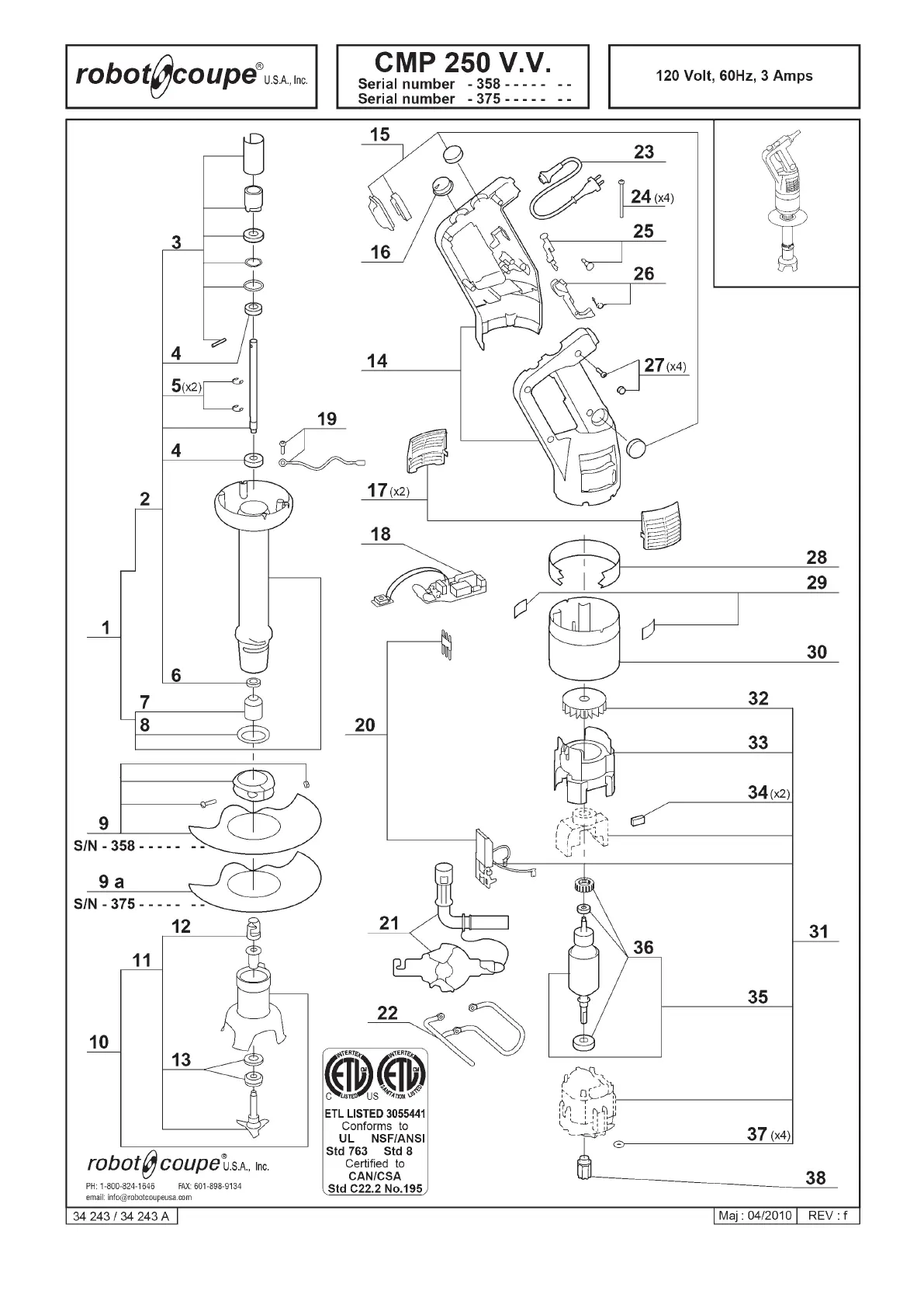 Bekijk gratis de handleiding van Robot Coupe CMP 400 V.V., stel vragen en lees de antwoorden op veelvoorkomende problemen, of gebruik onze assistent om sneller informatie in de handleiding te vinden of uitleg te krijgen over specifieke functies.