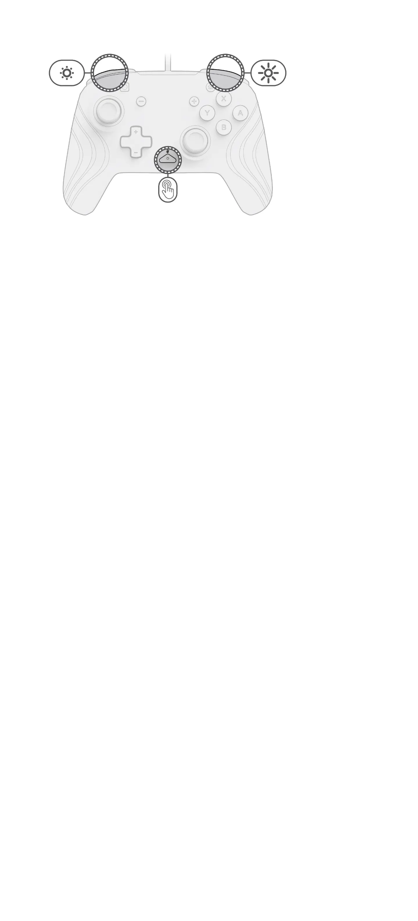 A. Ställ in ljusstyrkan genom att hålla ”Funktion”-knappen intryckt och trycka på ZR-knappen för att öka och ZL-