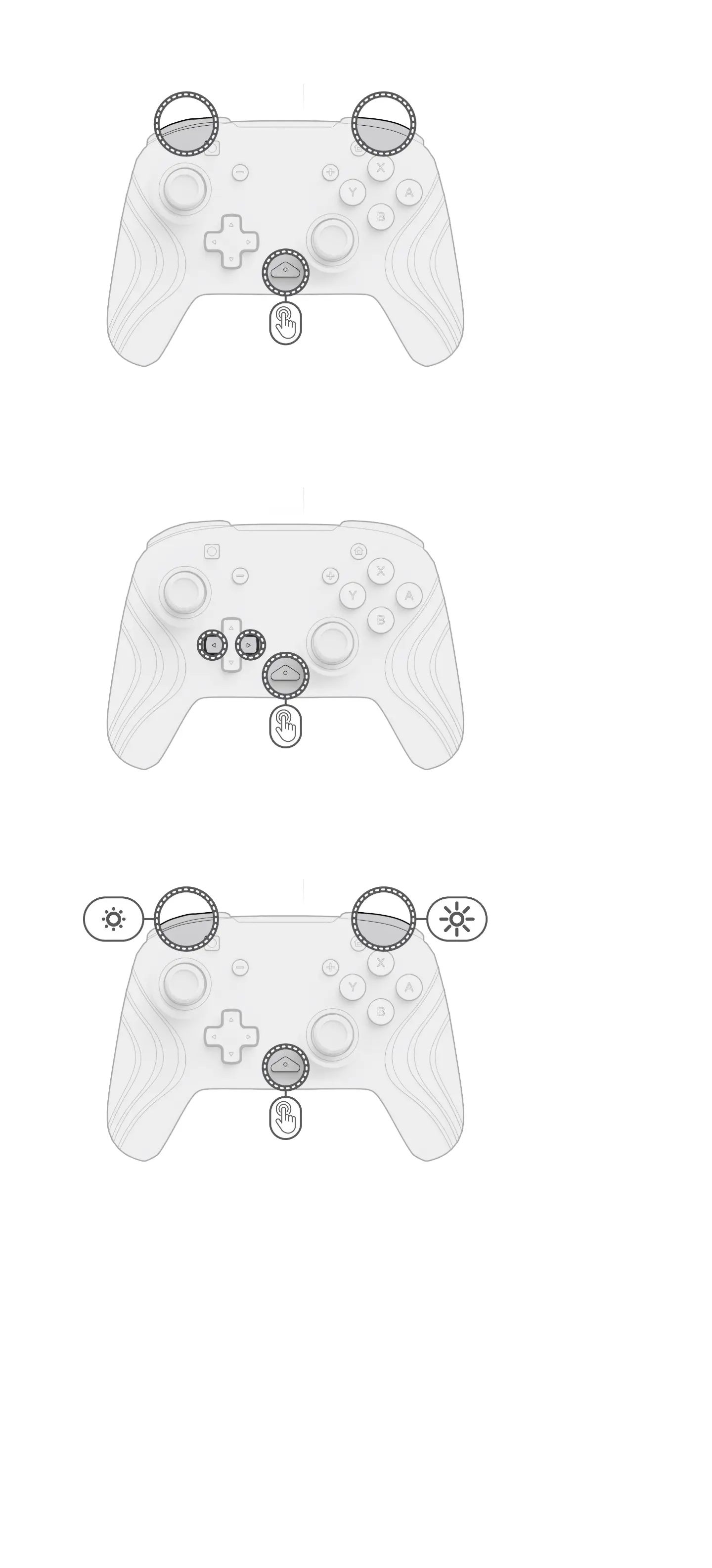 A. Per regolare la luminosità, tenere premuto il pulsante “funzione” e premere il pulsante ZR per aumentare la