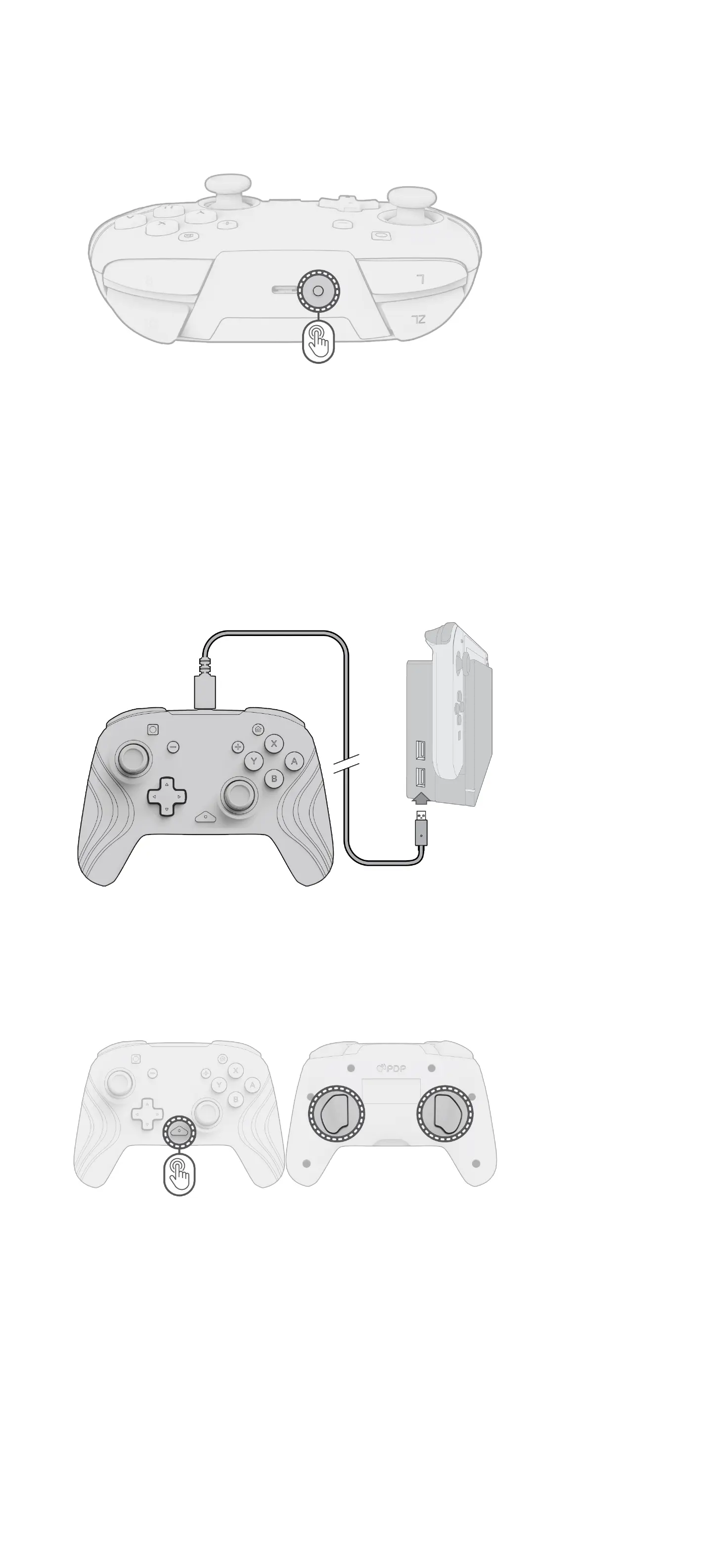 Tip: Je kunt ook de knop “Home” ingedrukt houden om de controller en het Nintendo Switch™-apparaat te activeren.
