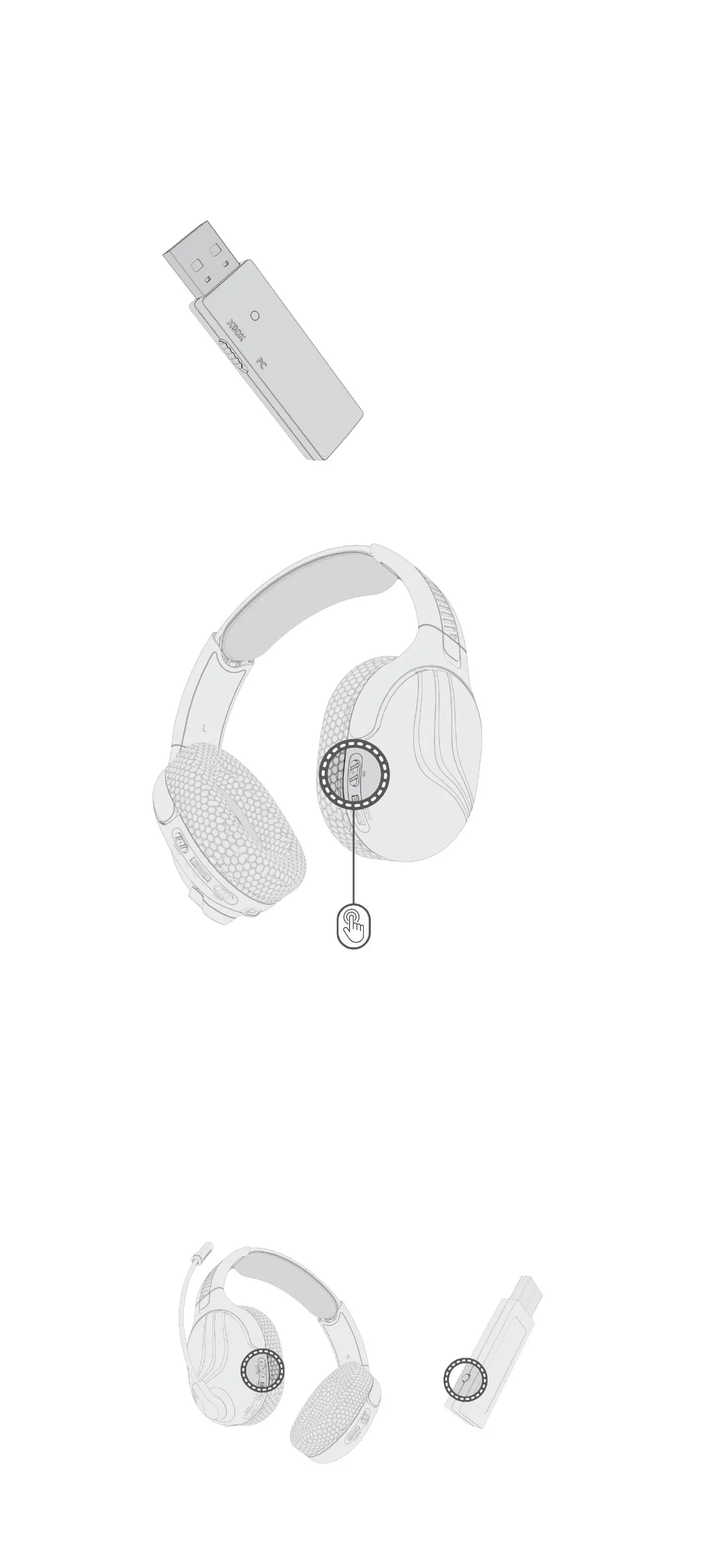 c. Quindi, tenere premuto il pulsante di accensione sulla cuffia fino a quando non si abbina con il dongle e il LED