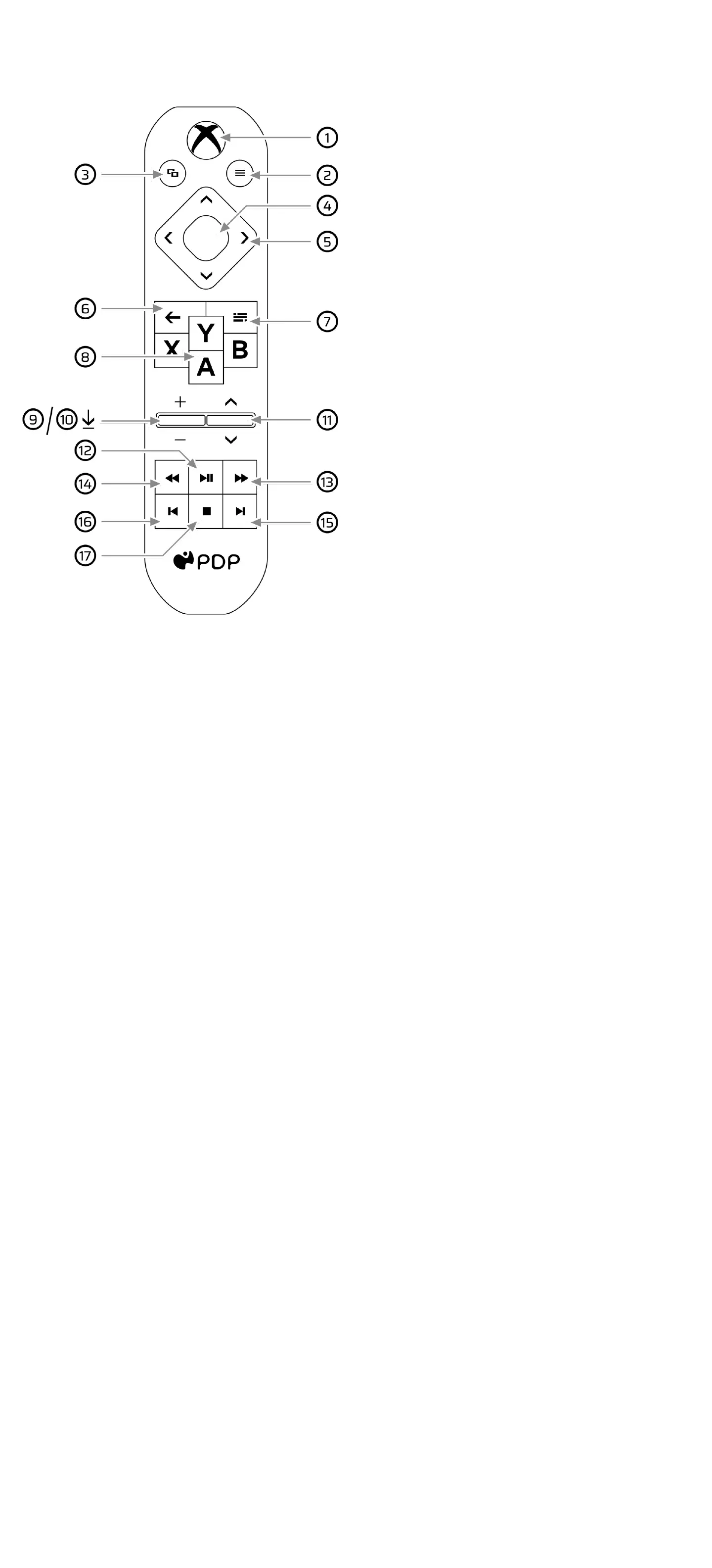 a. Nemesis Media Remote har vanlige Xbox-knapper som X, Y, A og B. Disse knappene har de samme funksjonene som en
