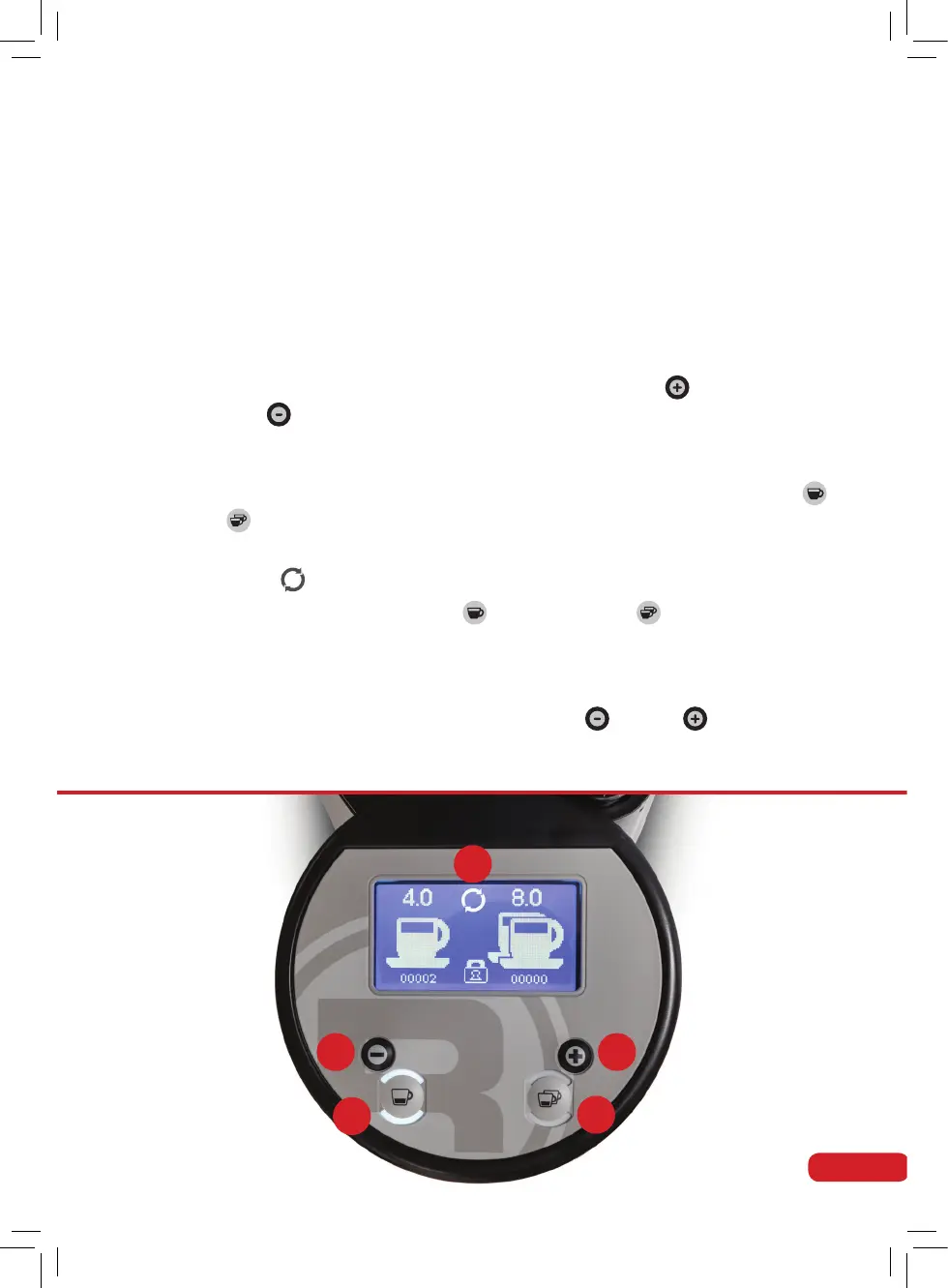 • Dieser Taster leuchtet. Der Kaffee wird gemahlen und fällt in den
