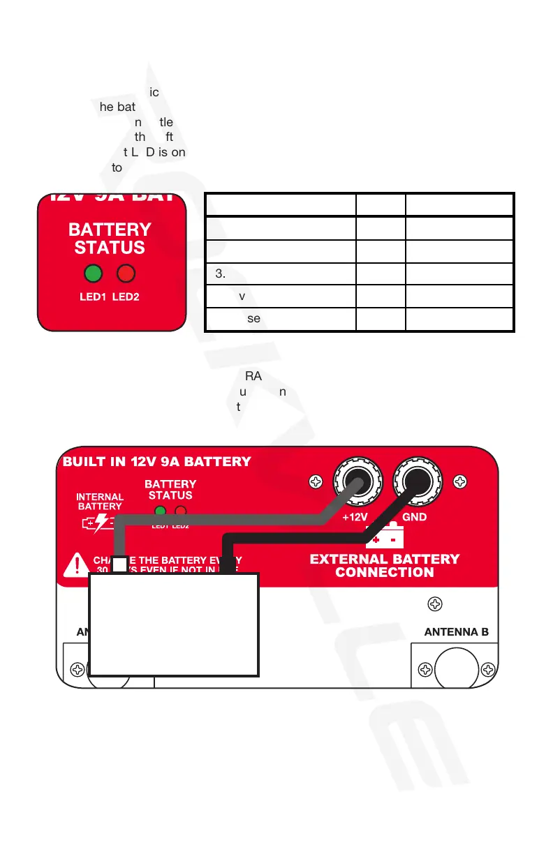 is off and the right LED is on. When the battery is drained it is important that you immediately