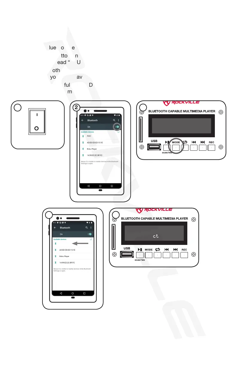 4. Once in Bluetooth mode, the unit should show up on your device as “ROCKVILLE”.