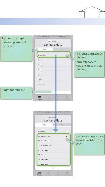 Using the tone list screen