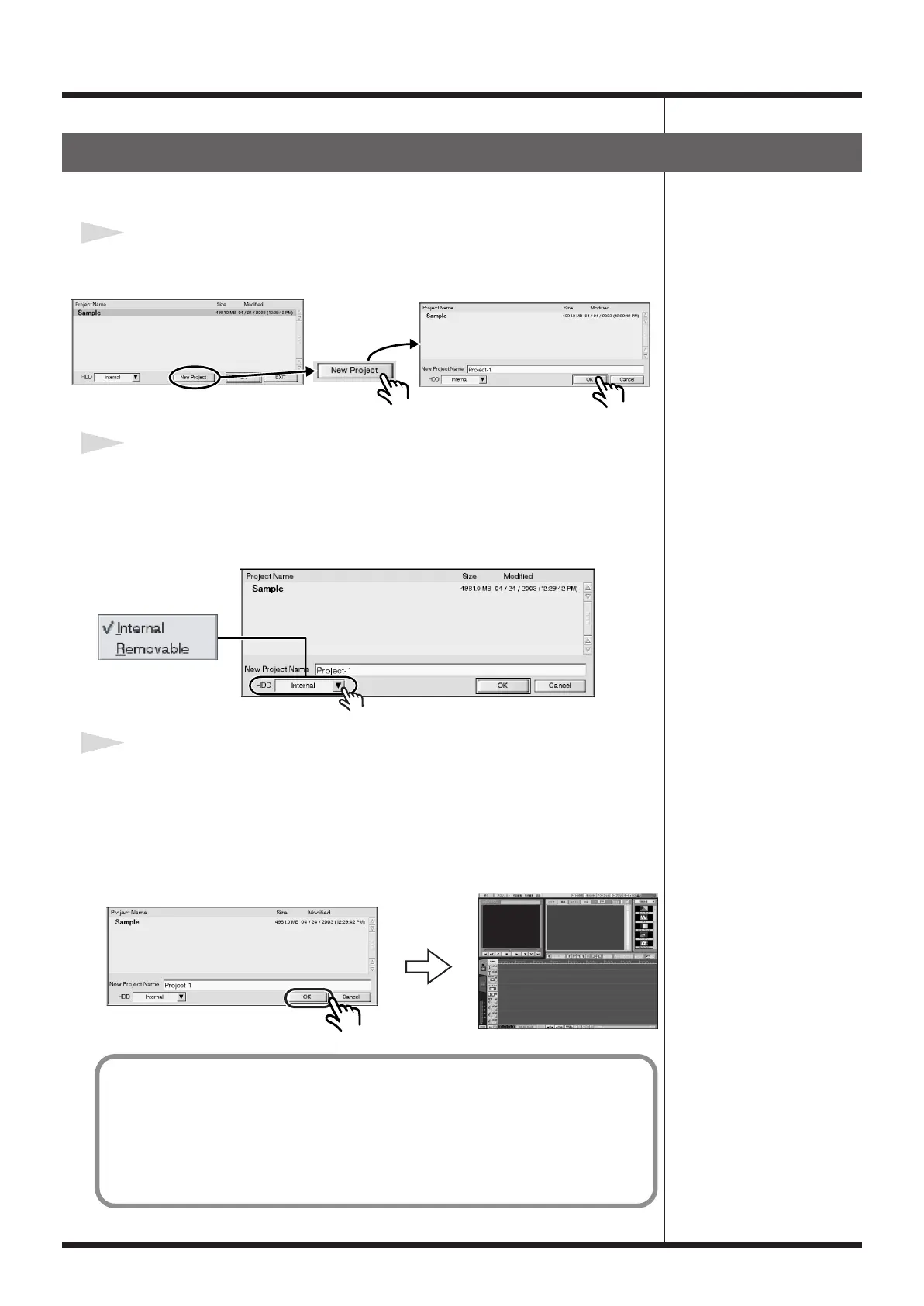 the removable hard disk. In the Project Selection window, choose either “Internal”