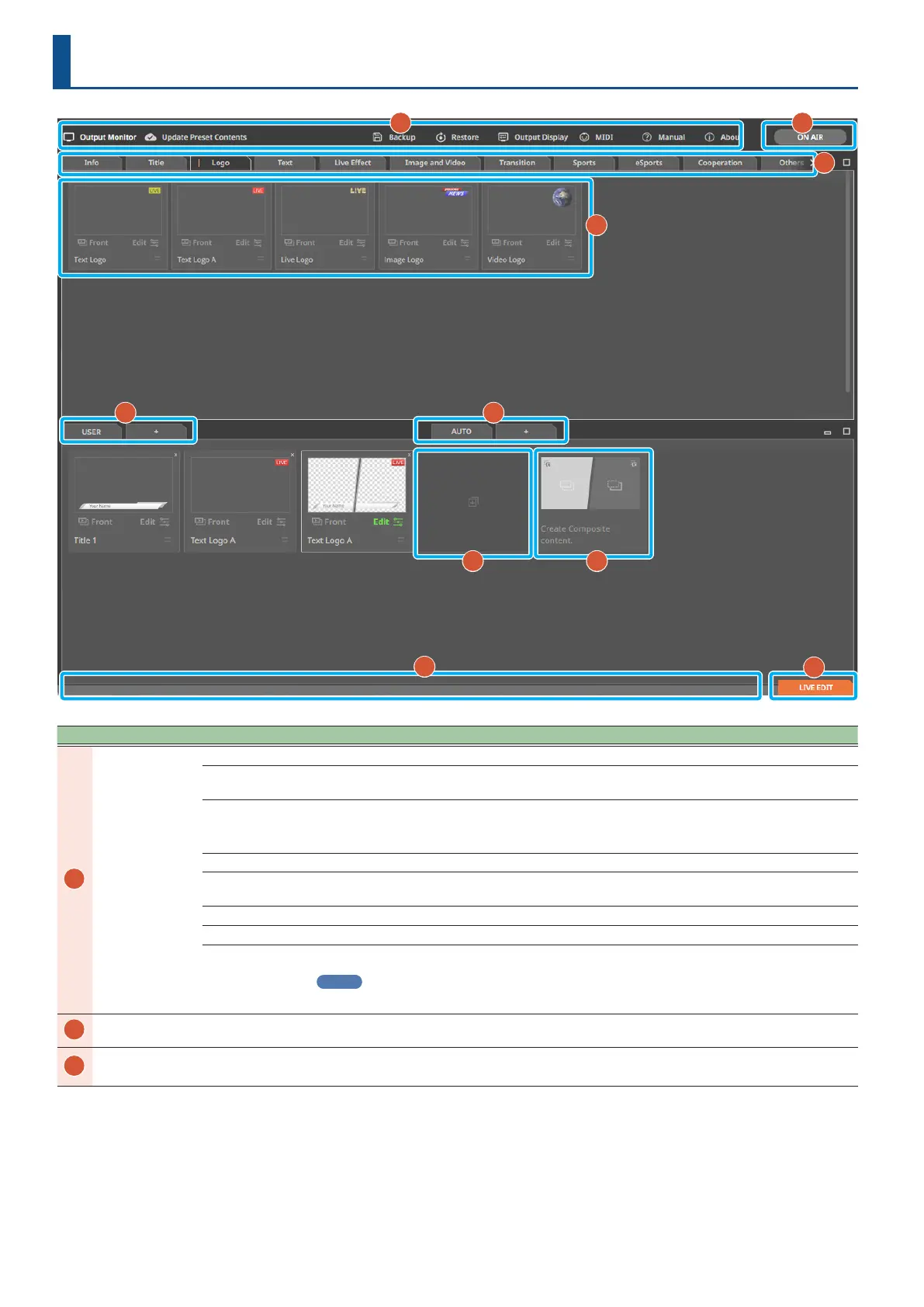 MIDI Congures the MIDI settings. For details, refer to “MIDI settings screen” (p. 12).