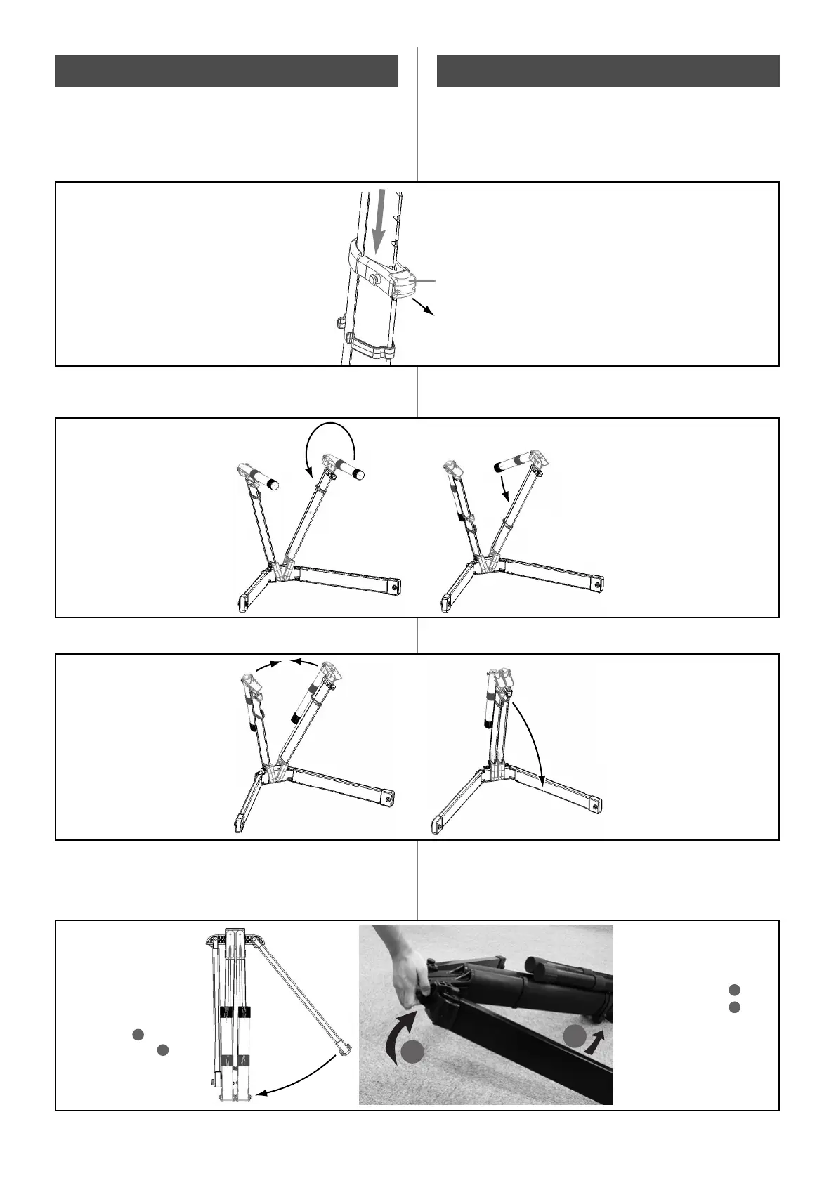 支柱を内側に寄せ、接地するまで手前に下ろします。