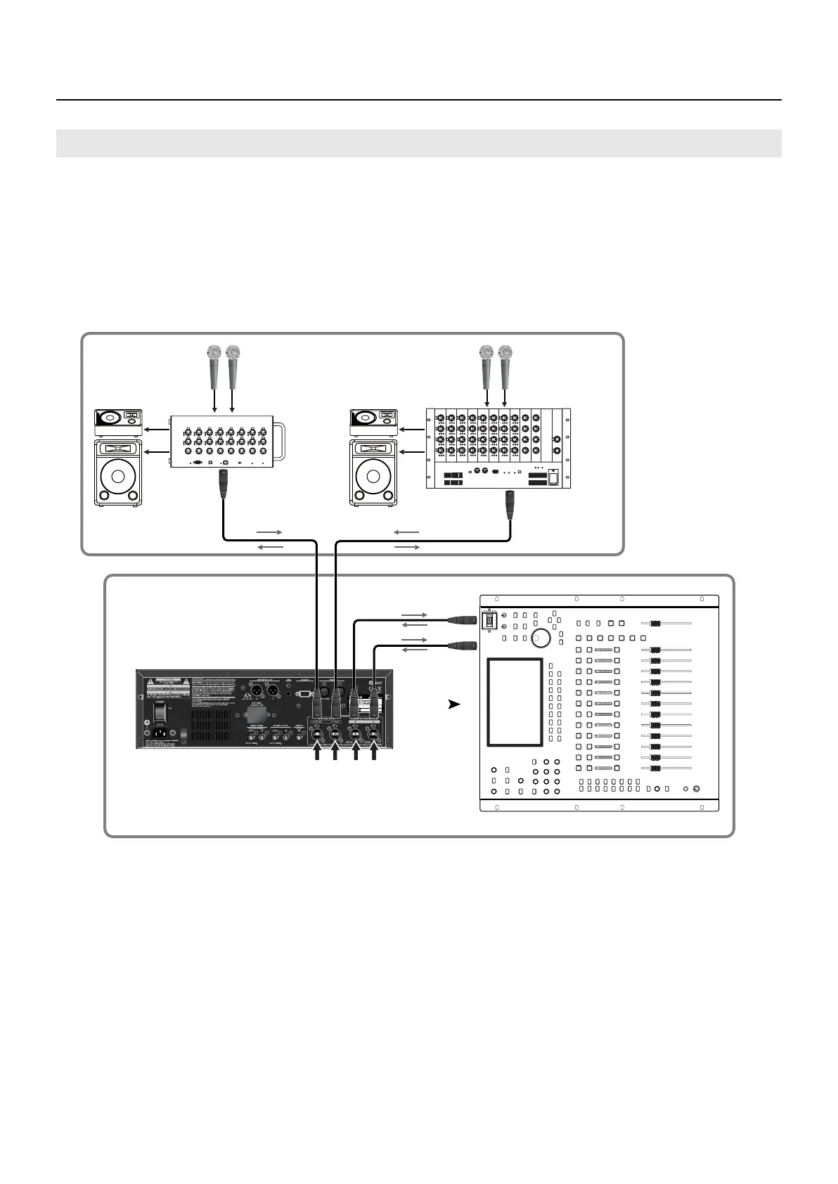 In connection example 3, only the playback audio from the R-1000 was output to the V-Mixer, but you can also mix live audio with