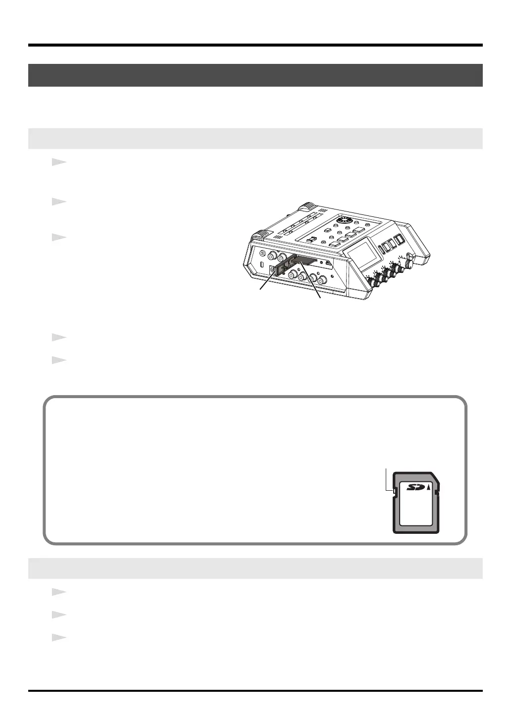 * Never insert or remove a memory card while this unit's power is on. Doing so may corrupt the data on the memory card.