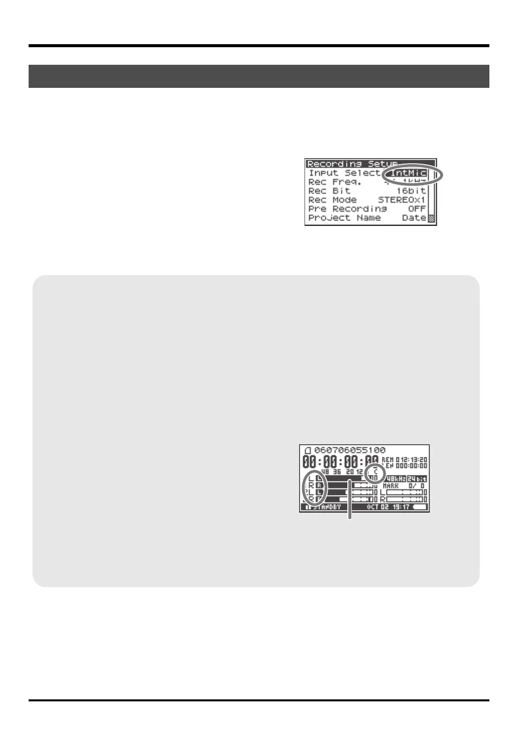 The following describes how to record an audio source via the R-44’s internal microphones.