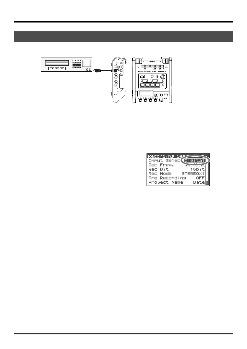 The following describes how to record from a digital device connected to the R-44’s Digital input jack.
