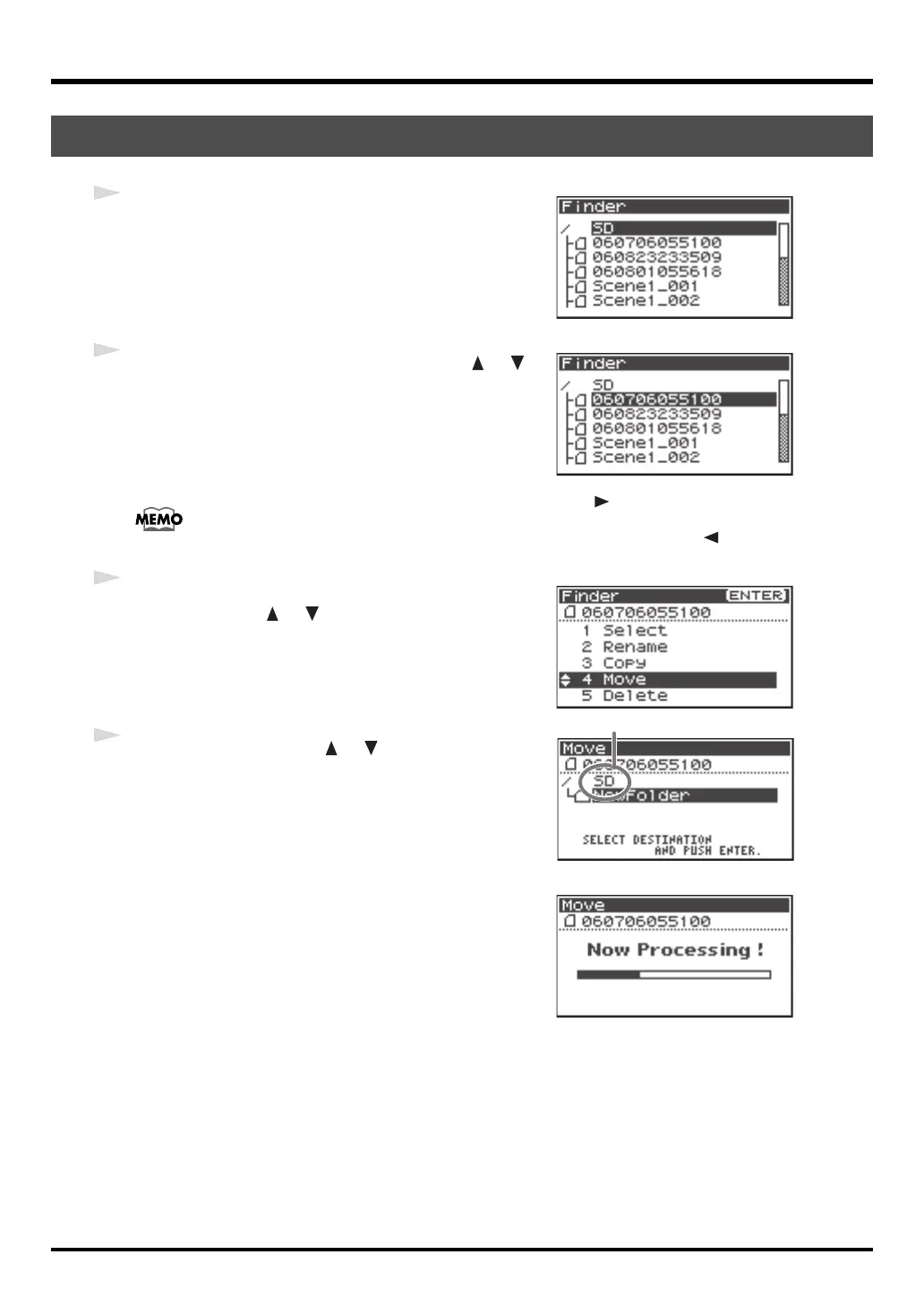 In the Finder screen, use the Cursor buttons [ ] [ ]