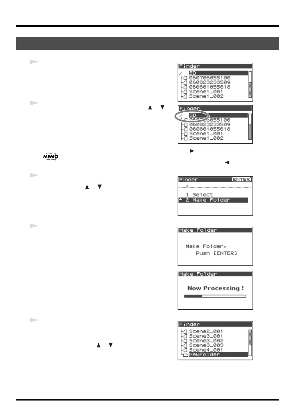 In the Finder screen, use the Cursor buttons [ ] [ ]