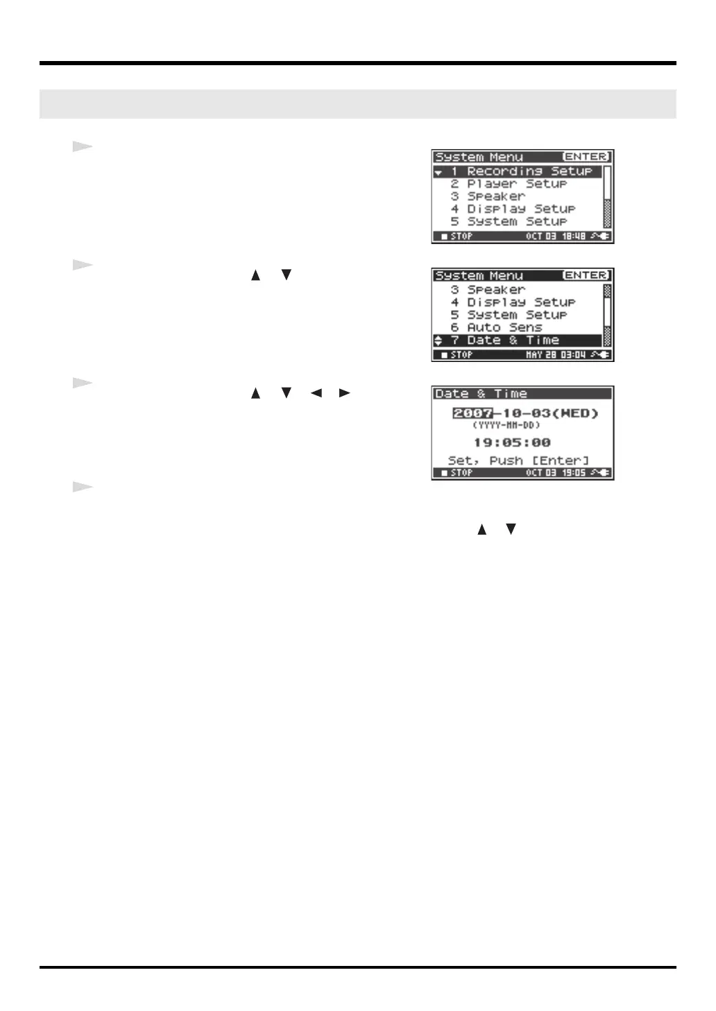 Use the Cursor buttons [ ] [ ] to select 7 Date &