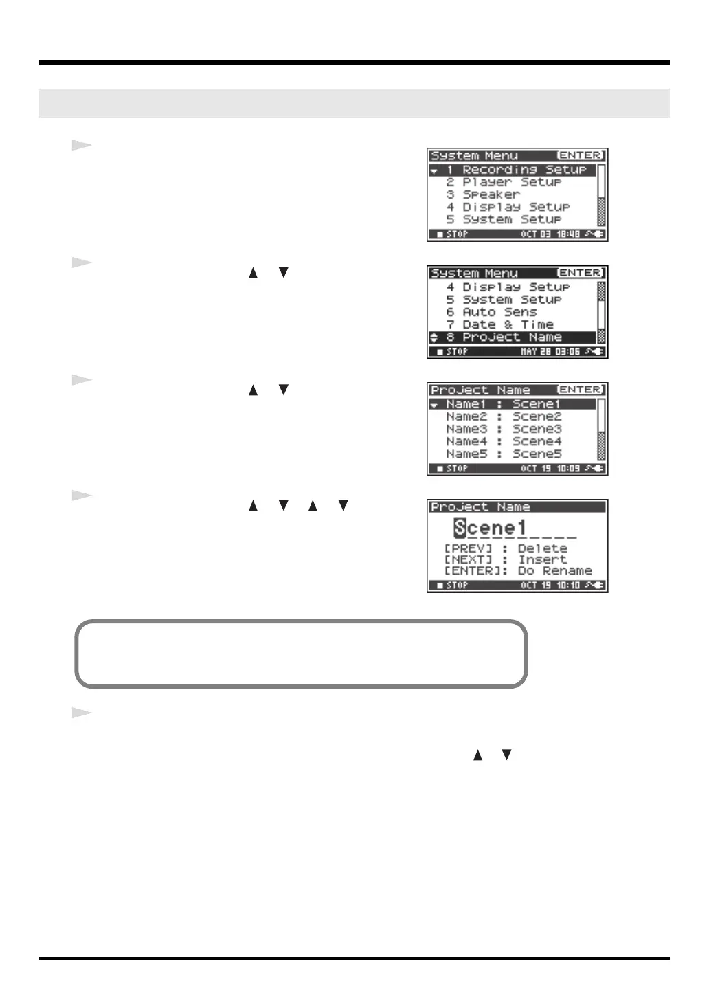Use the Cursor buttons [ ] [ ] to select 8 Project