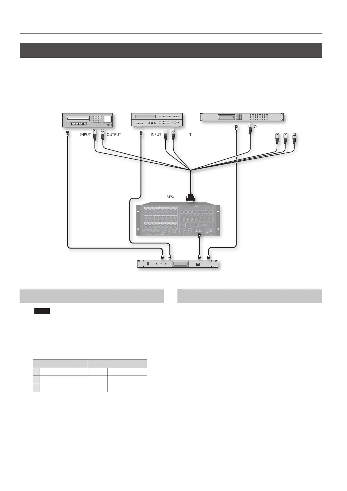 * The AES/EBU connector is a 25-pin D-sub female connector wired as shown in “AES/EBU connector” in “Connector Information”(p. 25). Check the