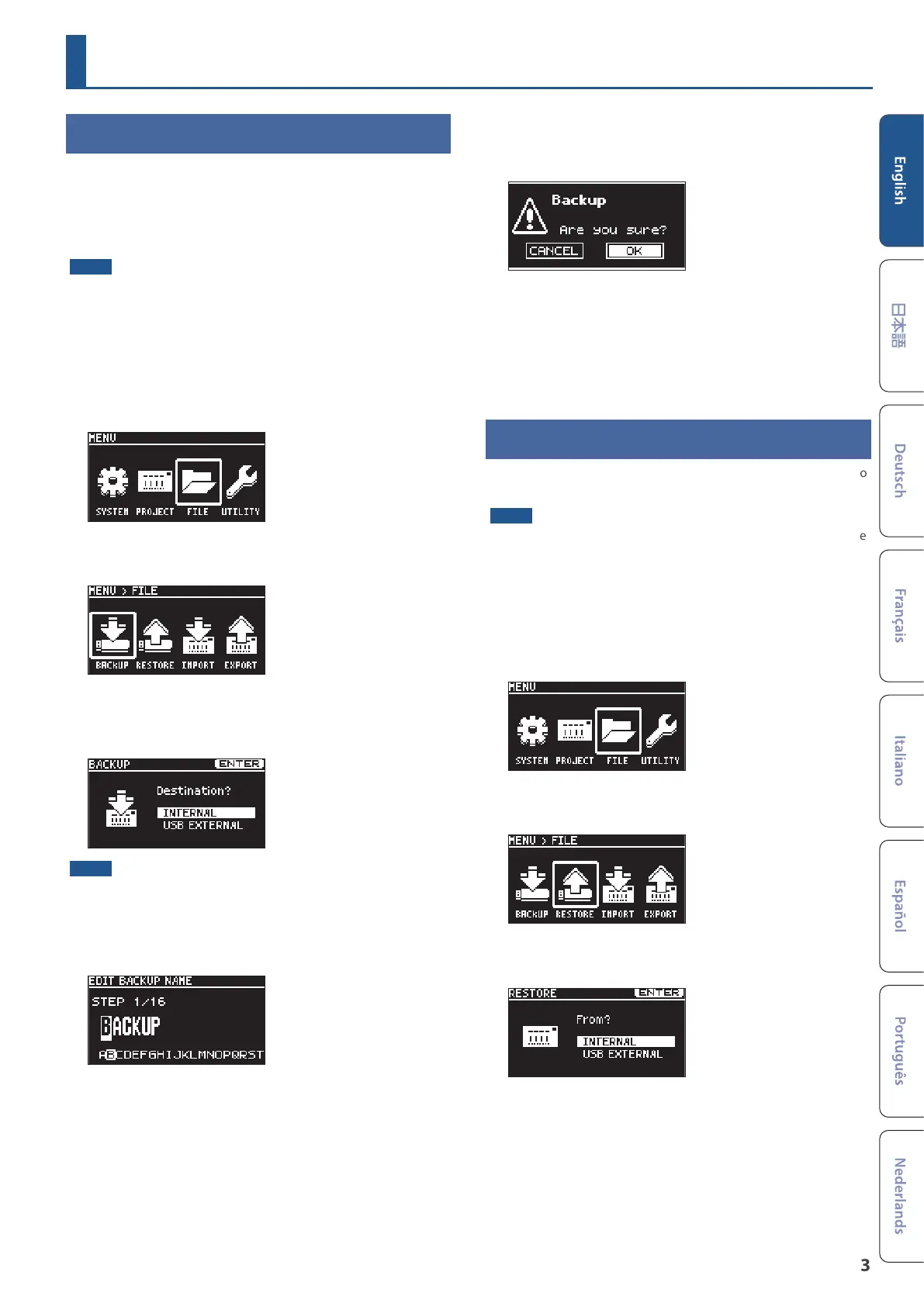 3. Use the [C6/VALUE] knob to select “BACKUP”, and