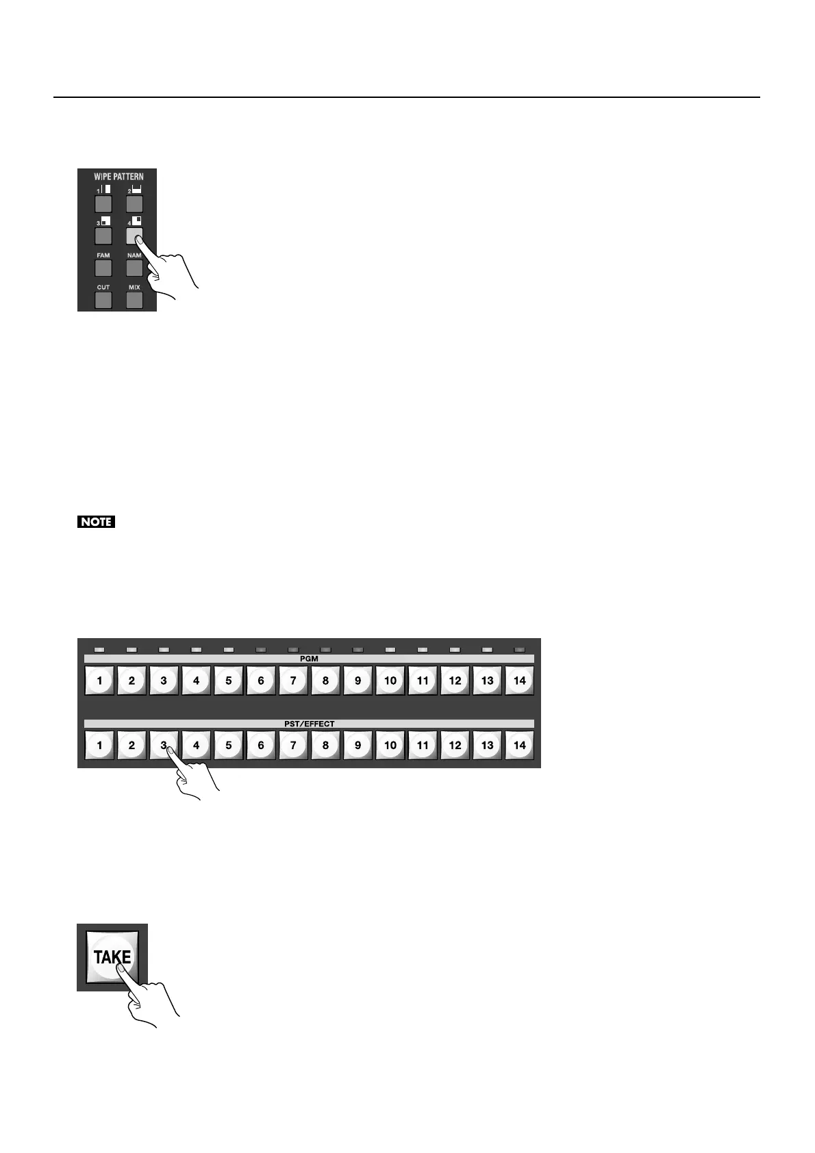 When PinP or Key is activated, MIX is automatically selected even if you have selected WIPE in the WIPE PATTERN section.