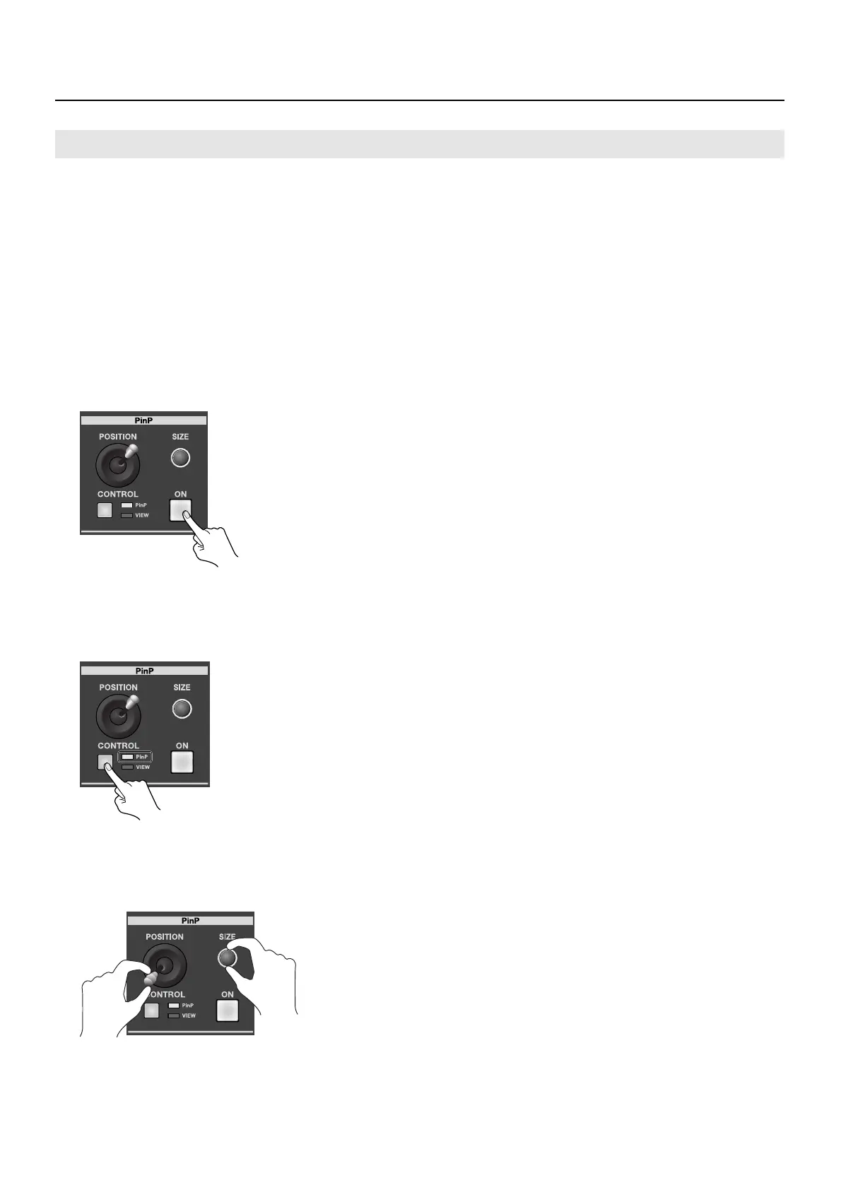 In the PinP section, press the [CONTROL] button to select the mode. When the [PinP] indicator lights up, the resize mode for the