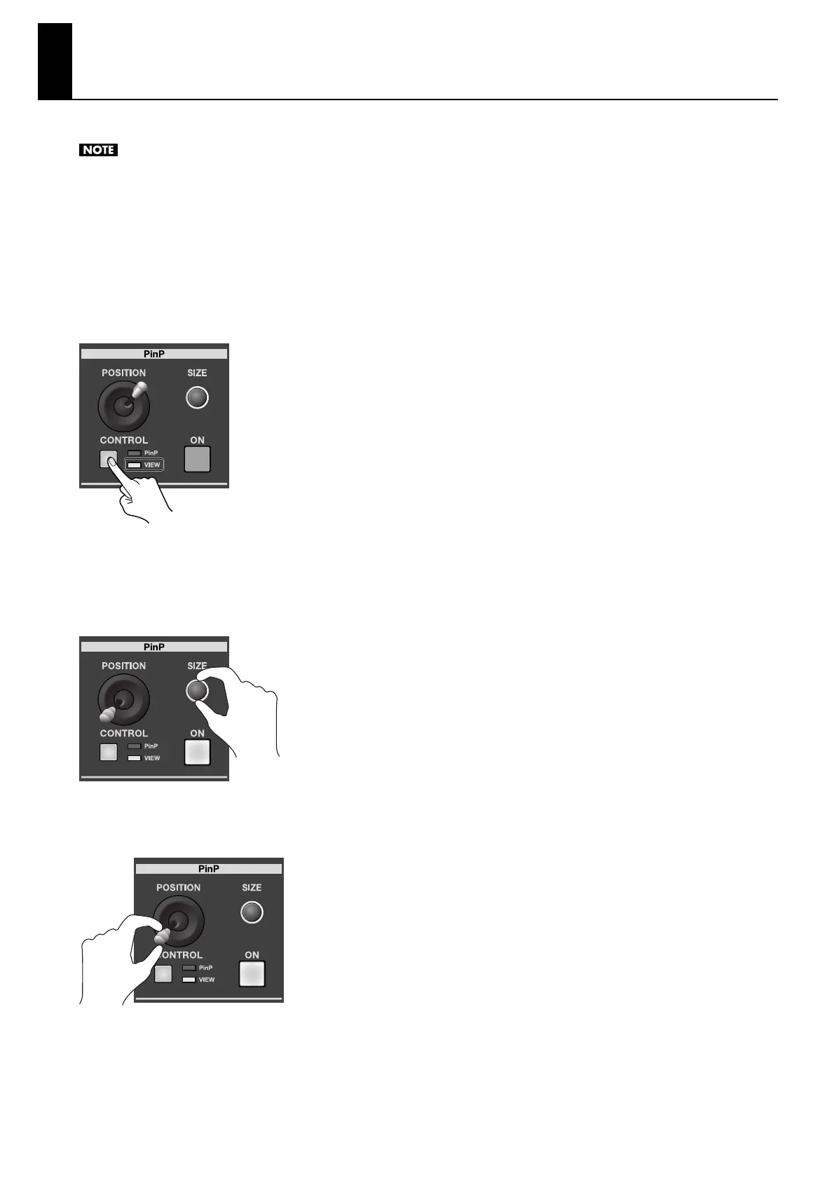At the PinP section, make sure the [ON] button is dark, then press the [CONTROL] button. The [VIEW] indicator lights up.