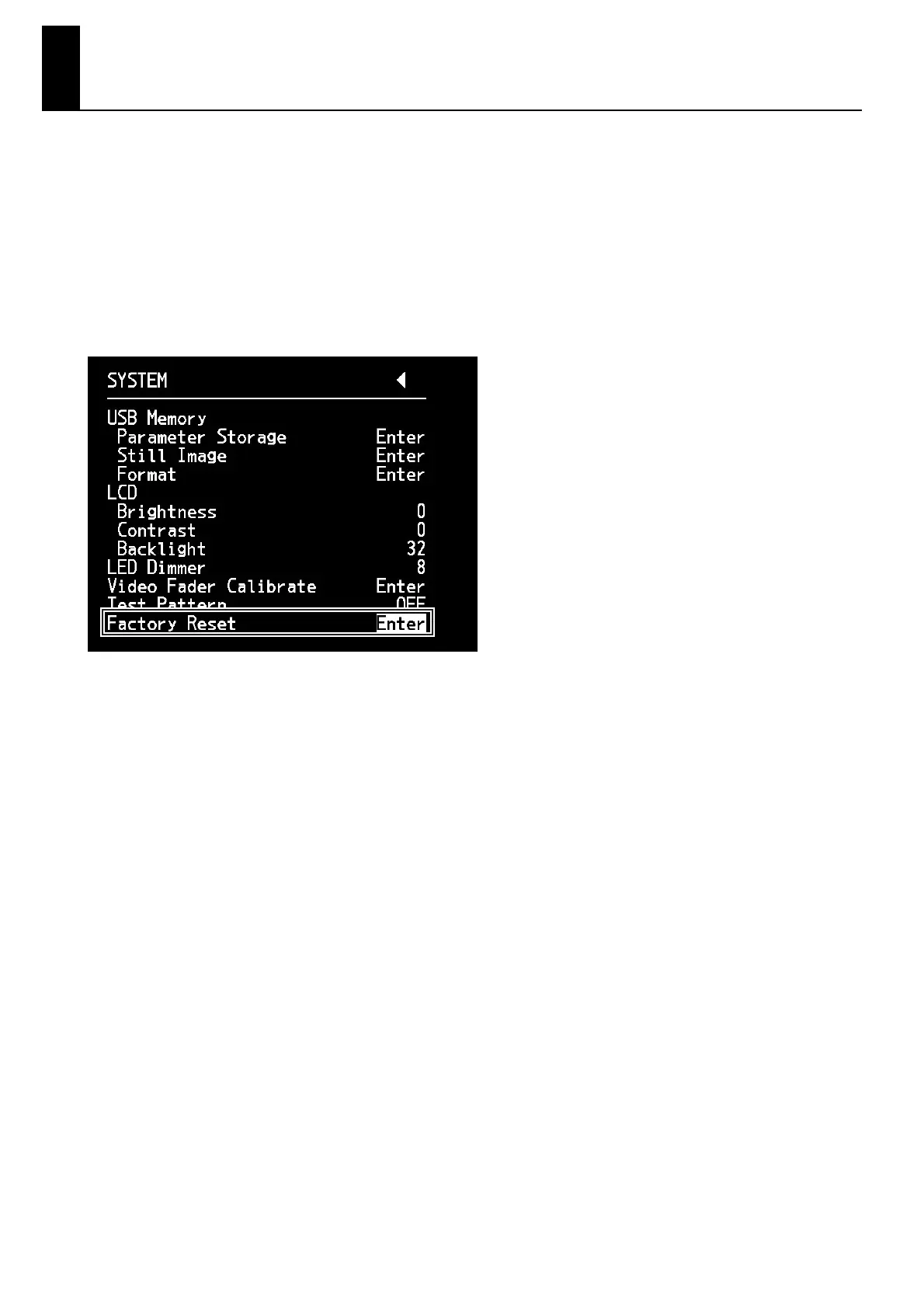 Use the [CURSOR] buttons to choose [Factory Reset].