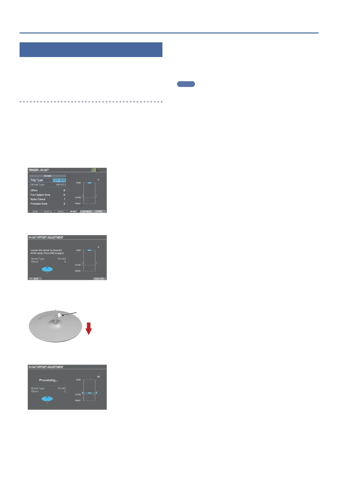 Het HI-HAT OFFSET ADJUSTMENT-scherm verschijnt.