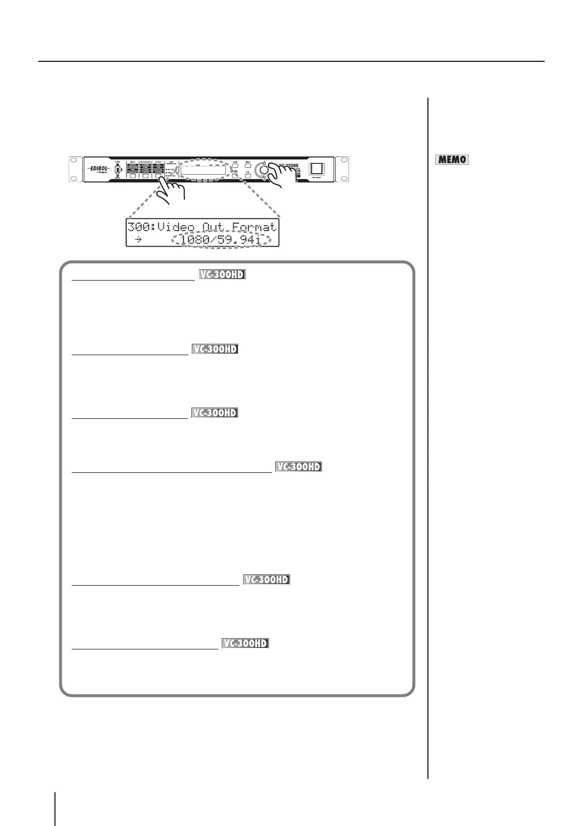 6-1. Press the OUTPUT button until "300: Video Out Format" is shown in the display.