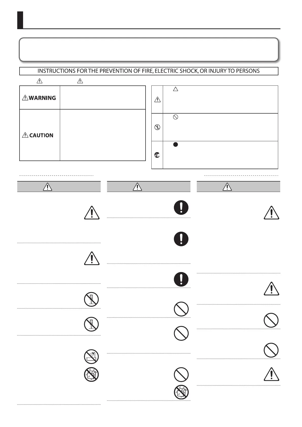 could result in damage, malfunction, or electric shock.