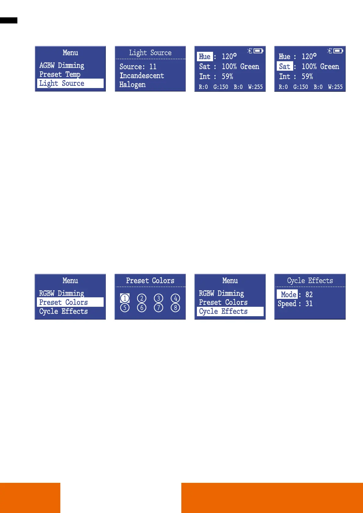 auf die Menü-Taste und wählen Sie das Menü „Preset Colors“