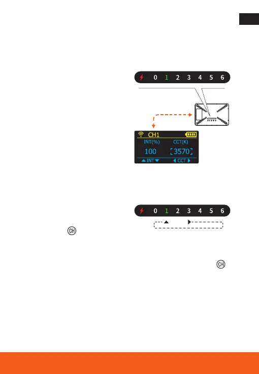 auf der Rückseite des LED-Panels drücken und den Kanal entspre-