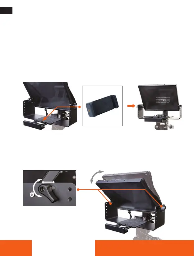 – Lösen Sie die beiden Teleprompter-Glas-Feststellschrauben, kippen Sie