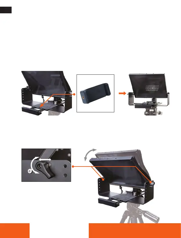 – Loosen the two teleprompter glass locking screws, tilt the telepromp-