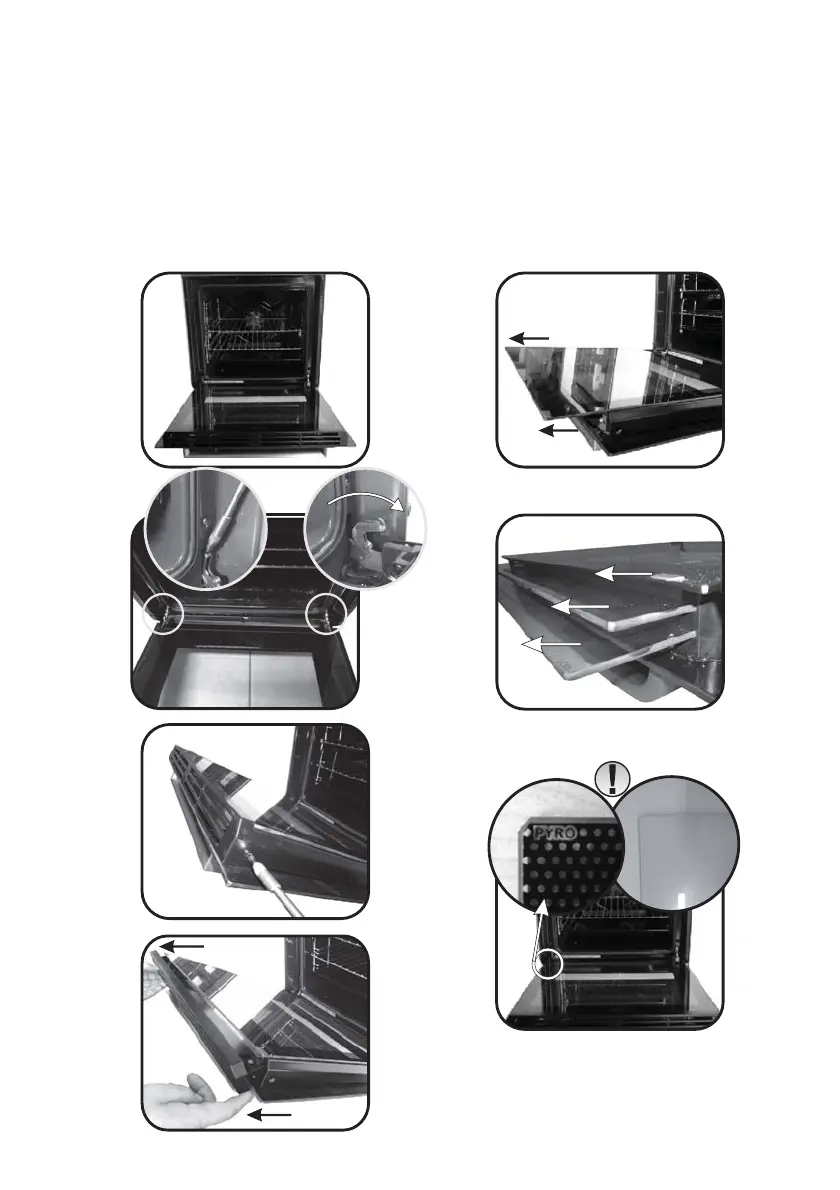 5.6. Retirez le verre, soigneusement de la porte du four (NB: dans les fours de pyrolyse, retirez l'extraire