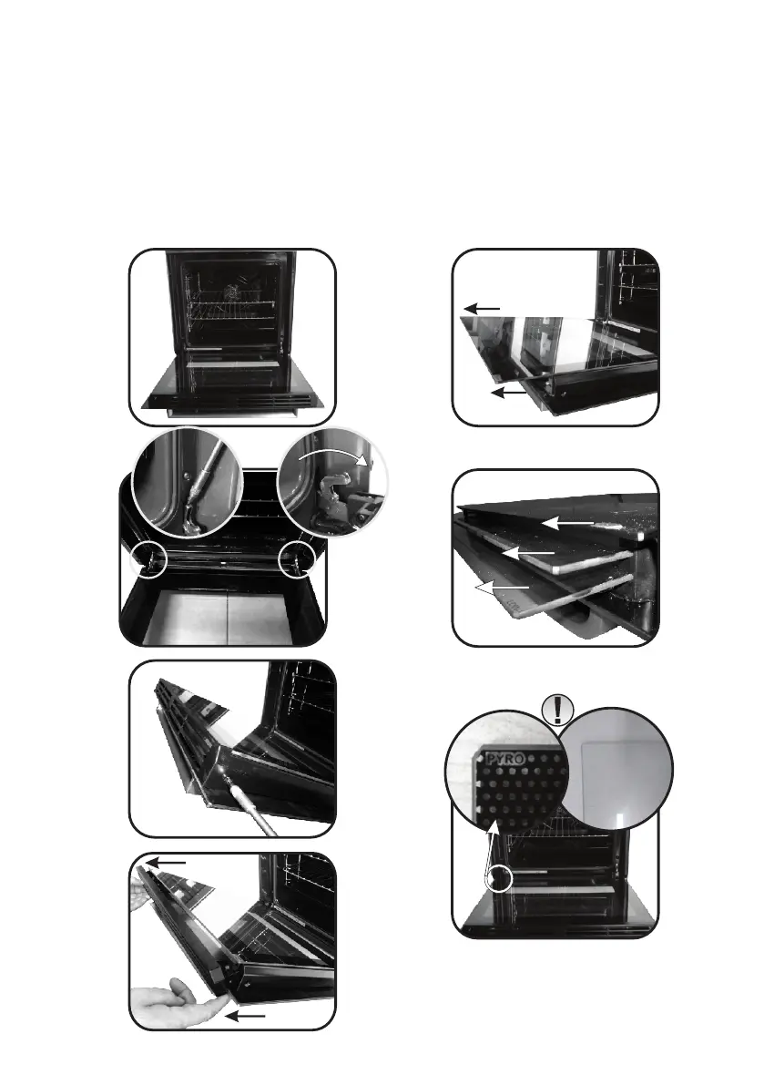 5.6. Retirez le verre, l'extraire soigneusement de la porte du four (NB: dans les fours de pyrolyse, retirez
