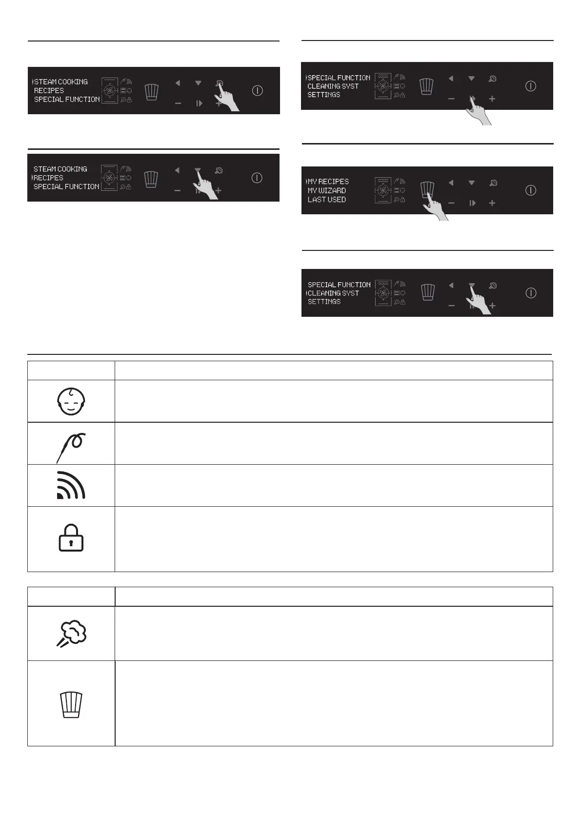 Please refer to chapter 3.10 Cooking Modes and 4.2 Pyrolysis.