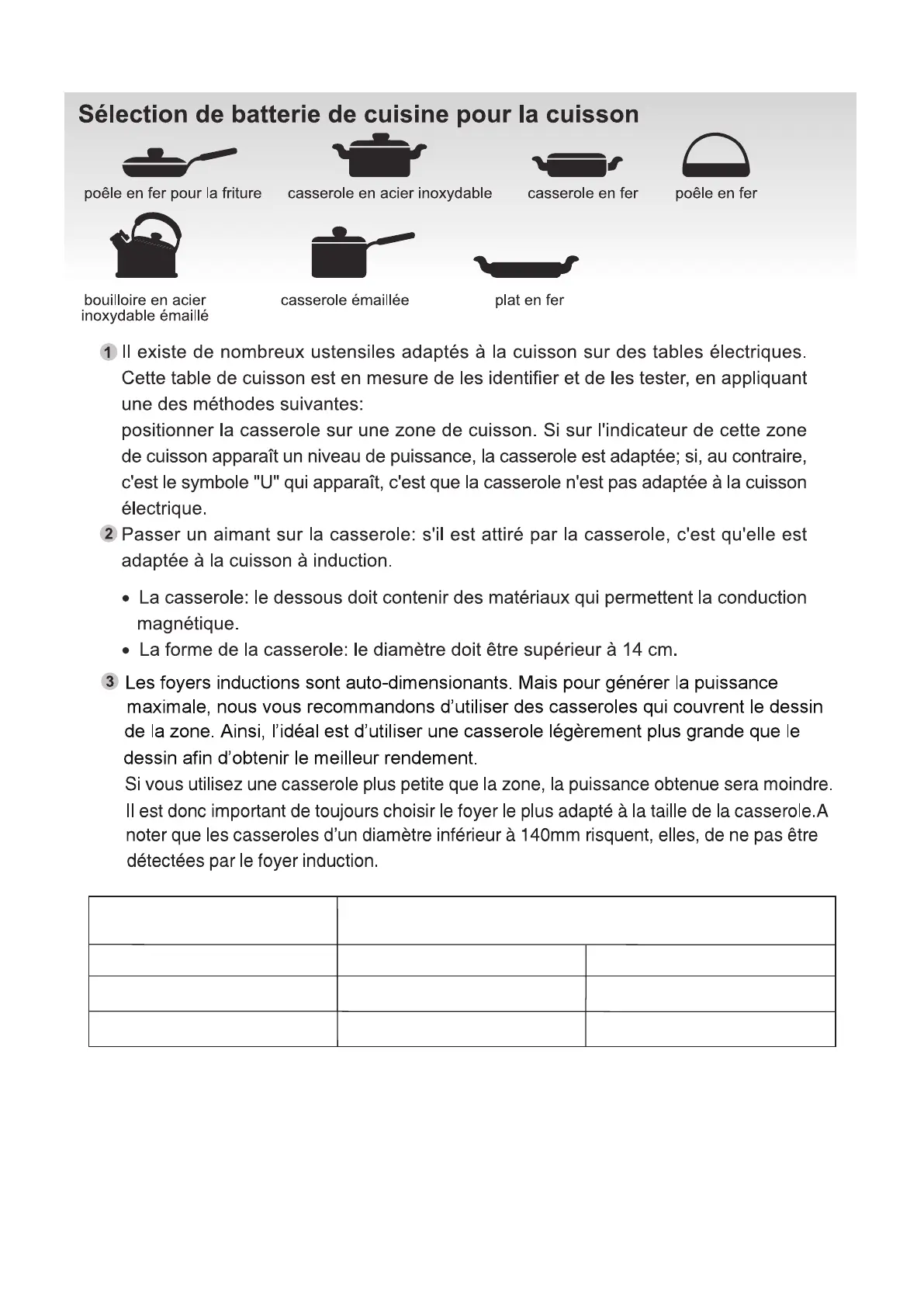 La détection de la zone peut varier en fonction de la qualité du recipient utilisé.
